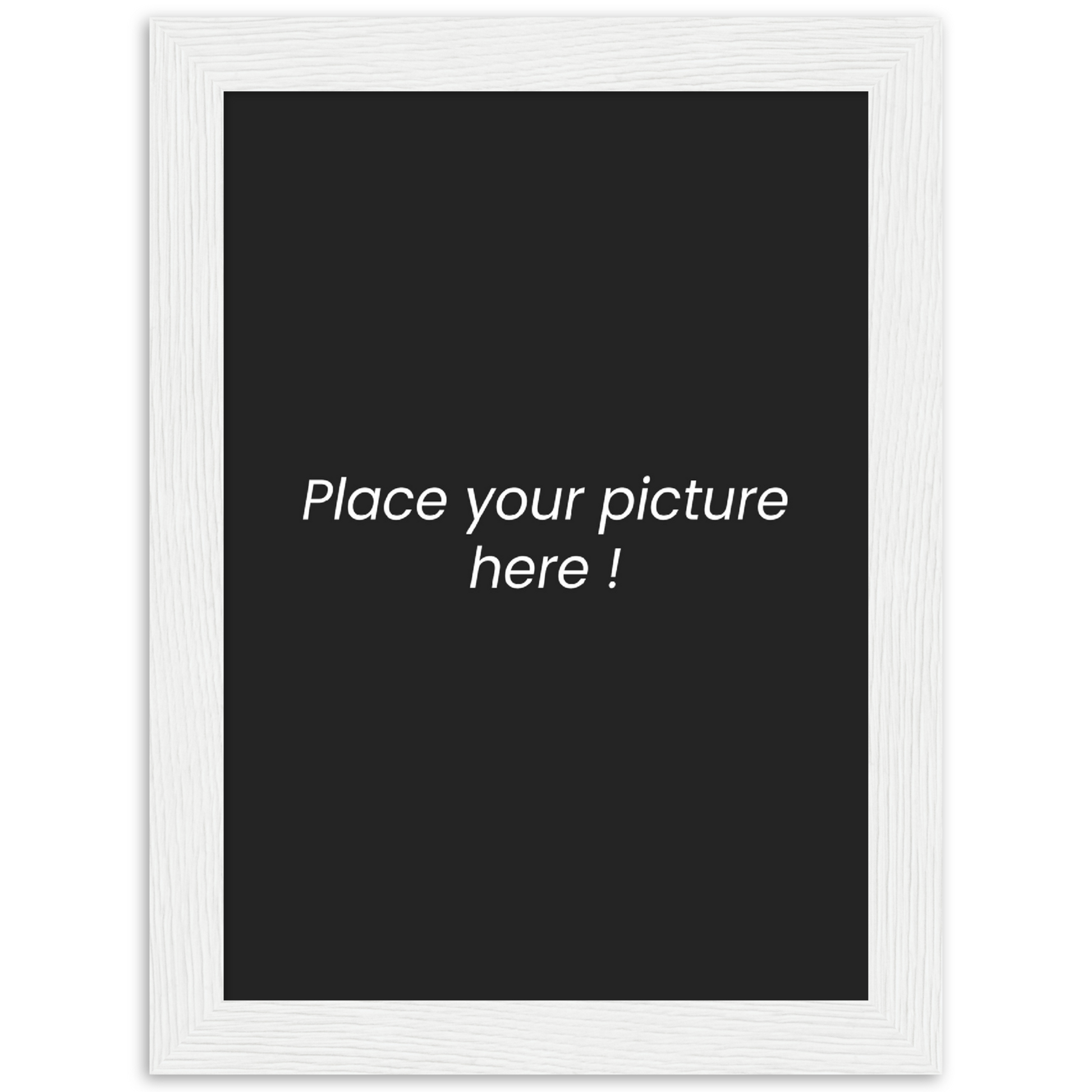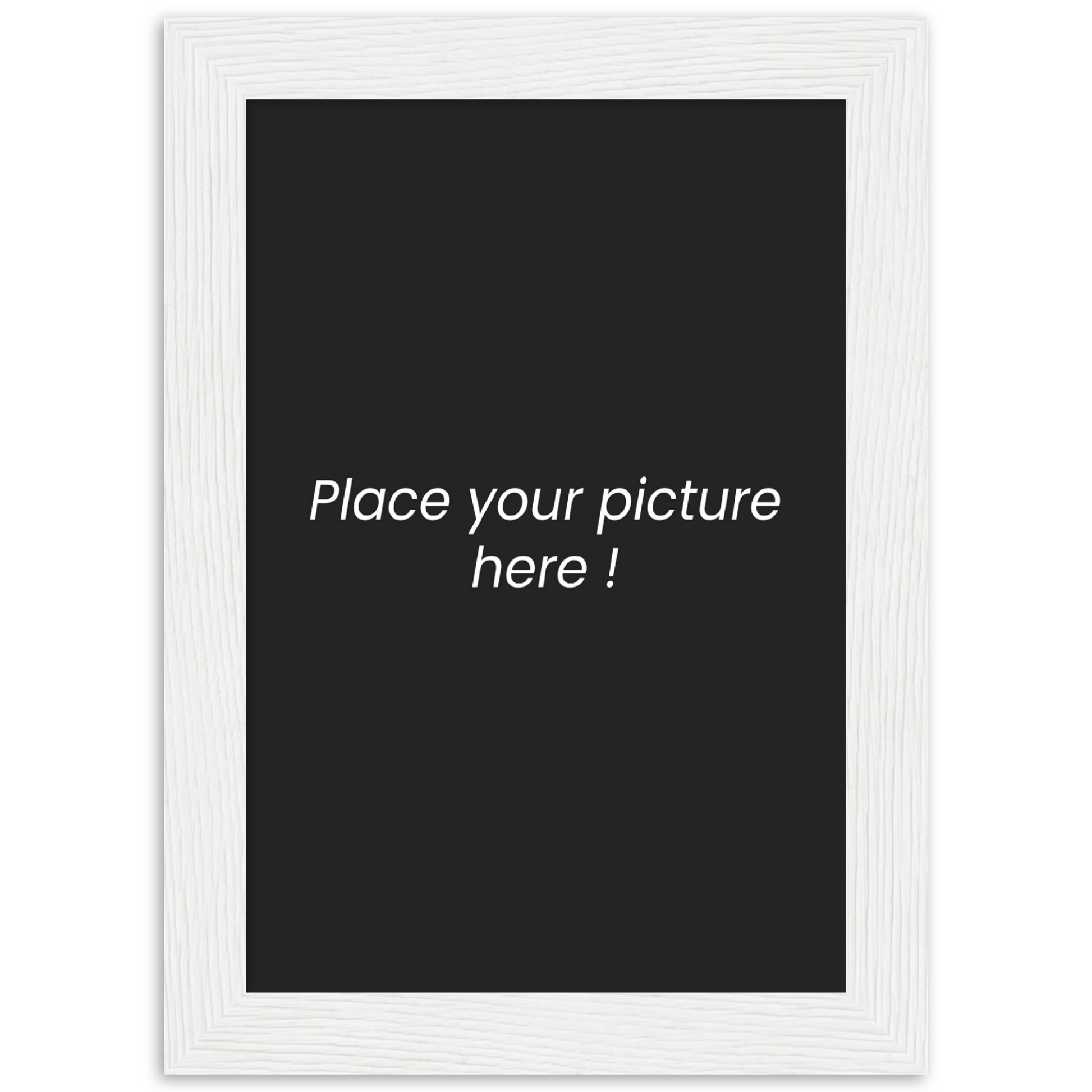 - Les cadres sont fabriqués en pin ou en chêne, selon les disponibilités locales, et sont disponibles en 4 couleurs : noir, blanc, bois naturel et bois brun foncé.