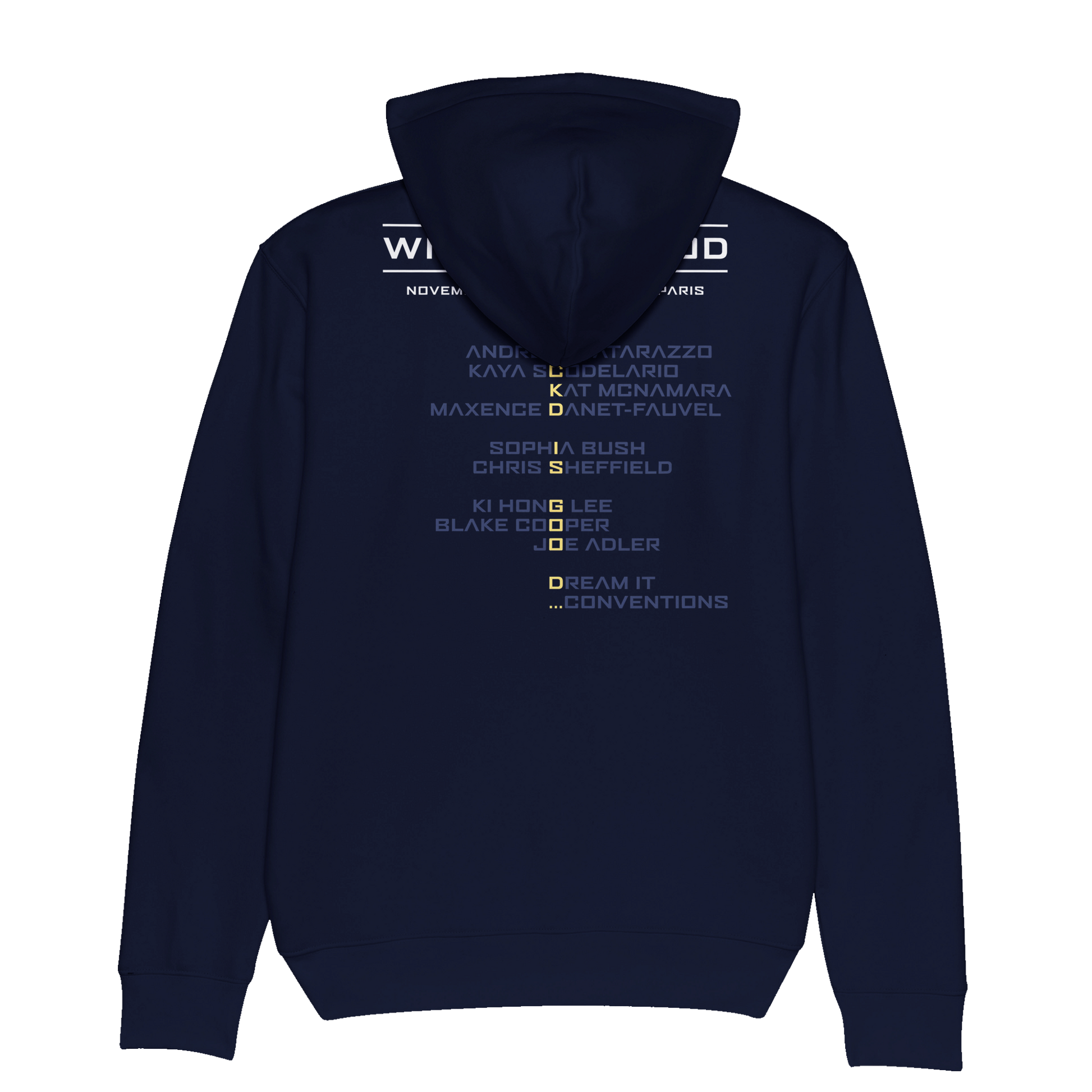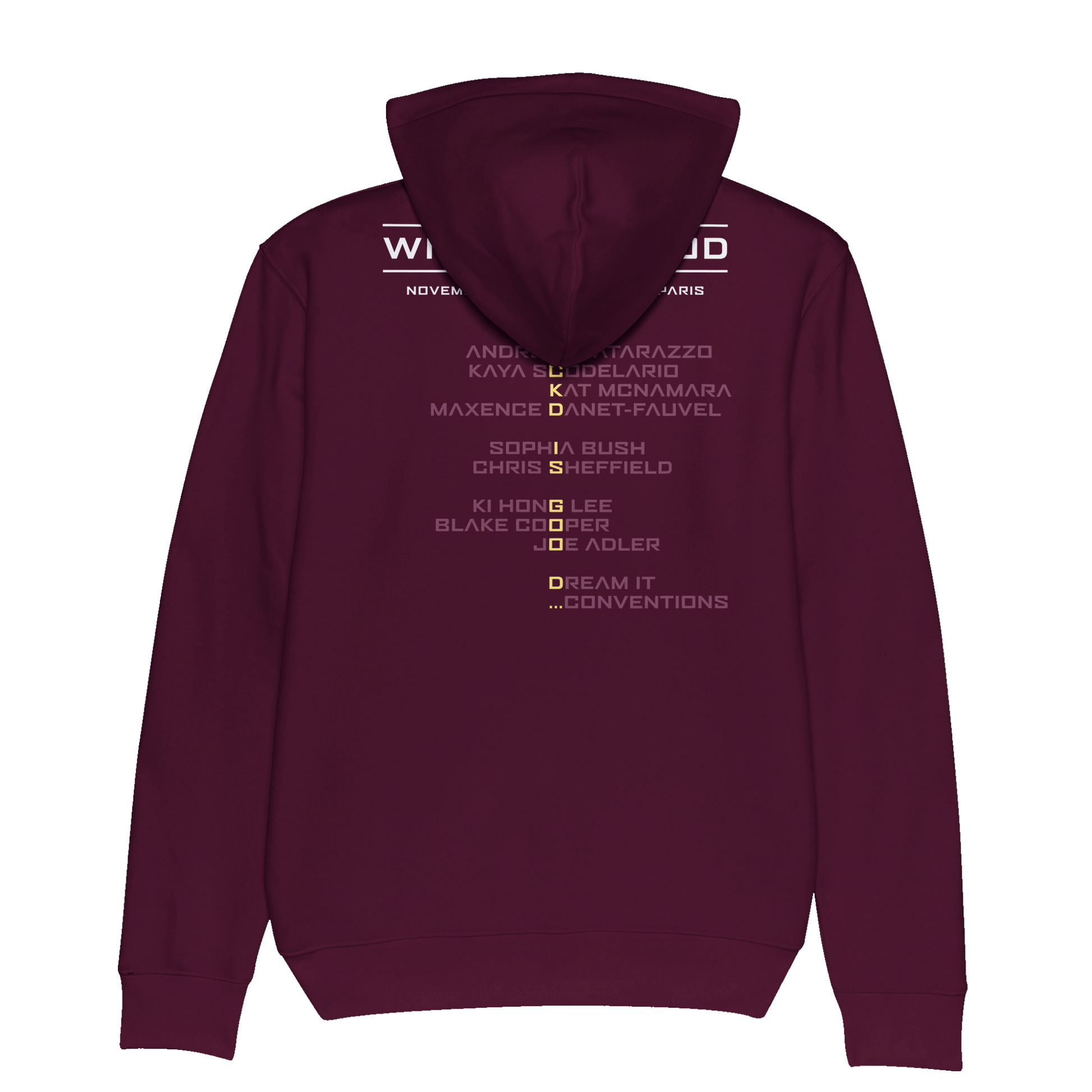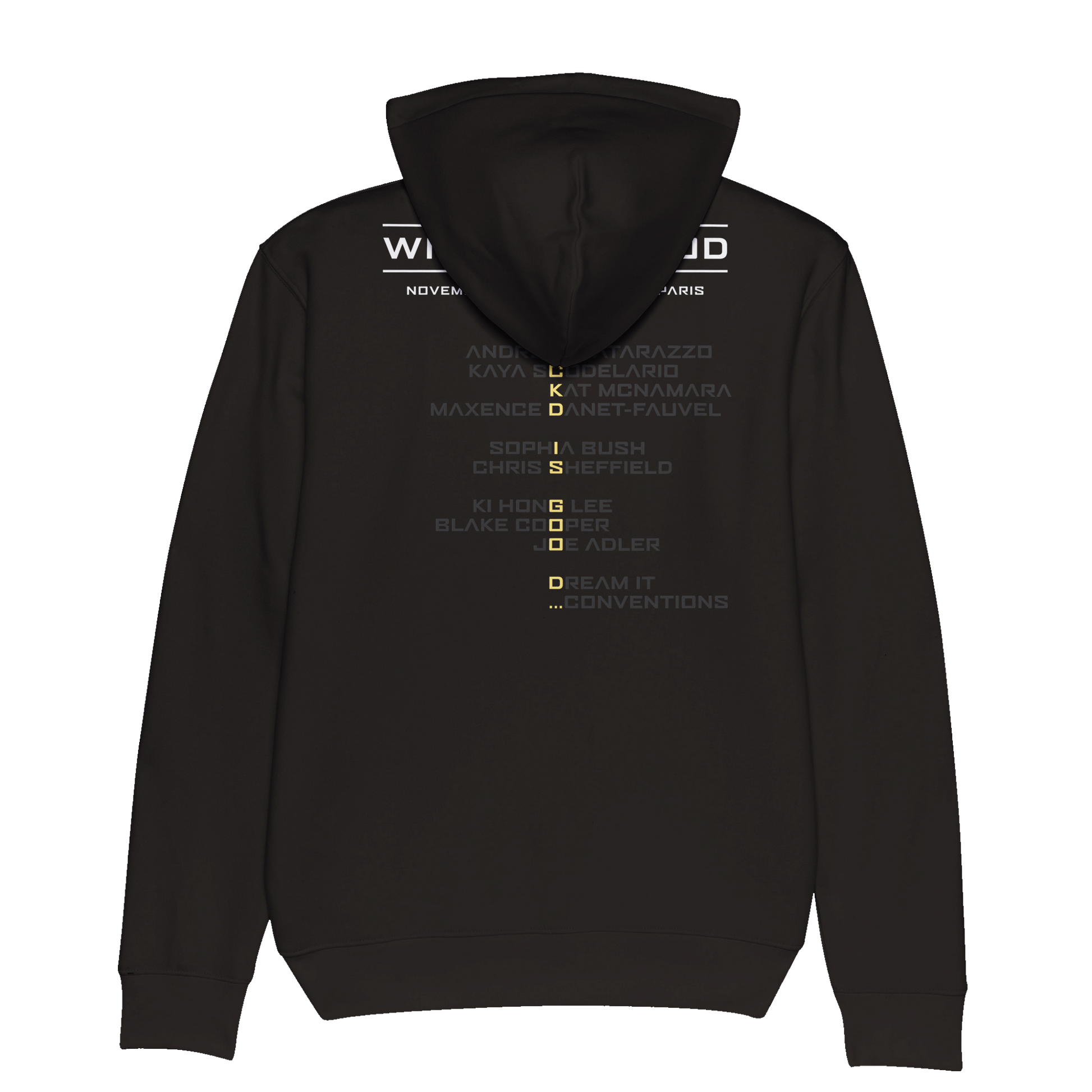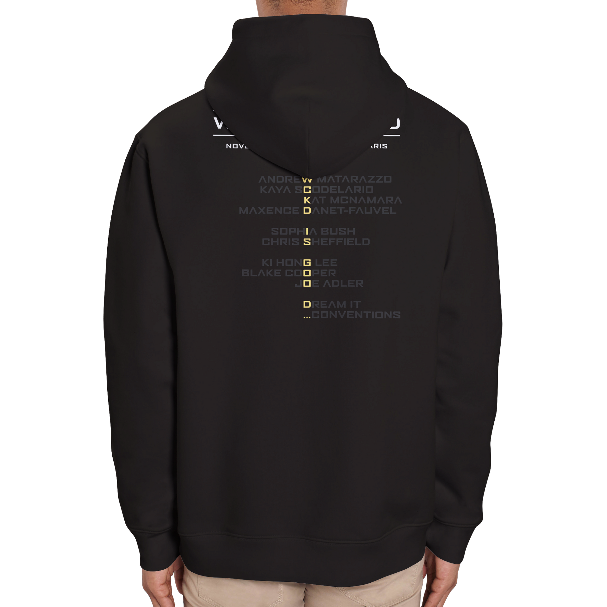 Un sweat à capuche avec avec le nom des acteurs (KAYA SCODELARIO, SOPHIA BUSH, KAT MCNAMARA, KI HONG LEE, BLACK COOPER, CHRIS SHEFFIELD, JOE ADLER, ANDREW MATARAZZO, MAXENCE DANET-FAUVEL) invités lors de la convention WICKED IS GOOD qui est inspirée de la saga Le Labyrinthe.