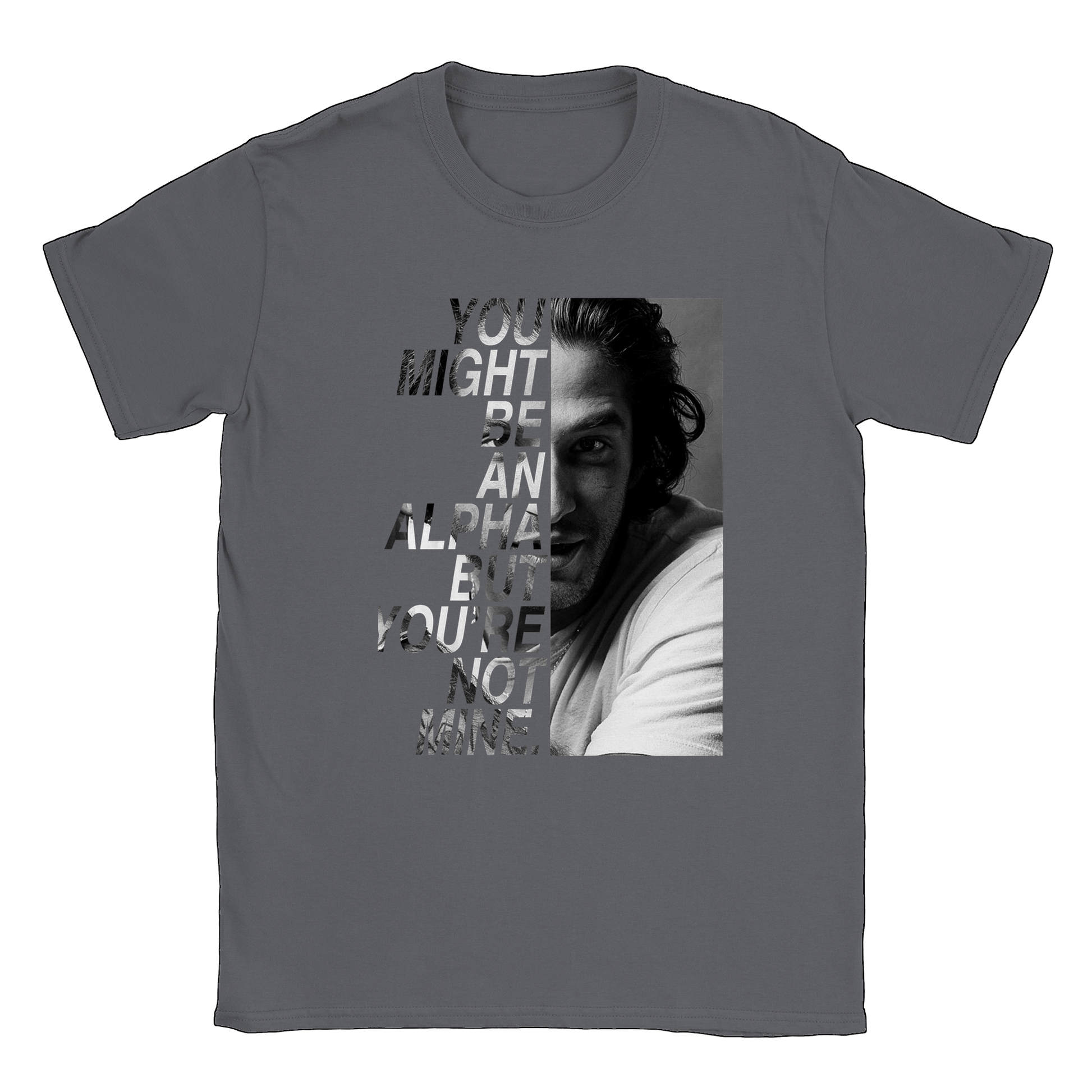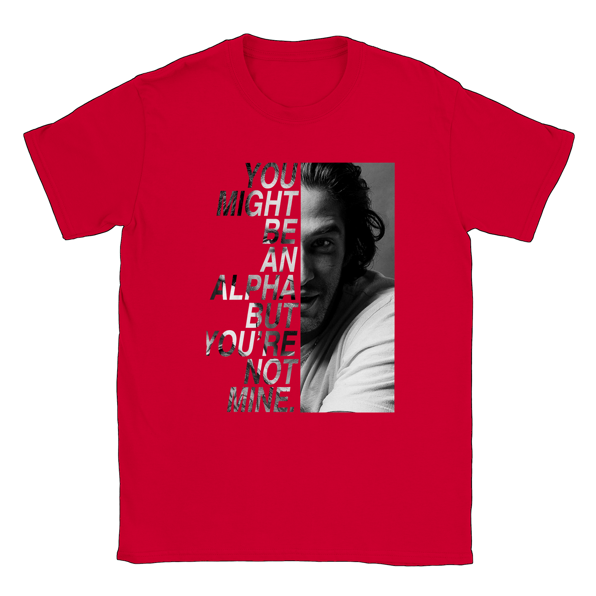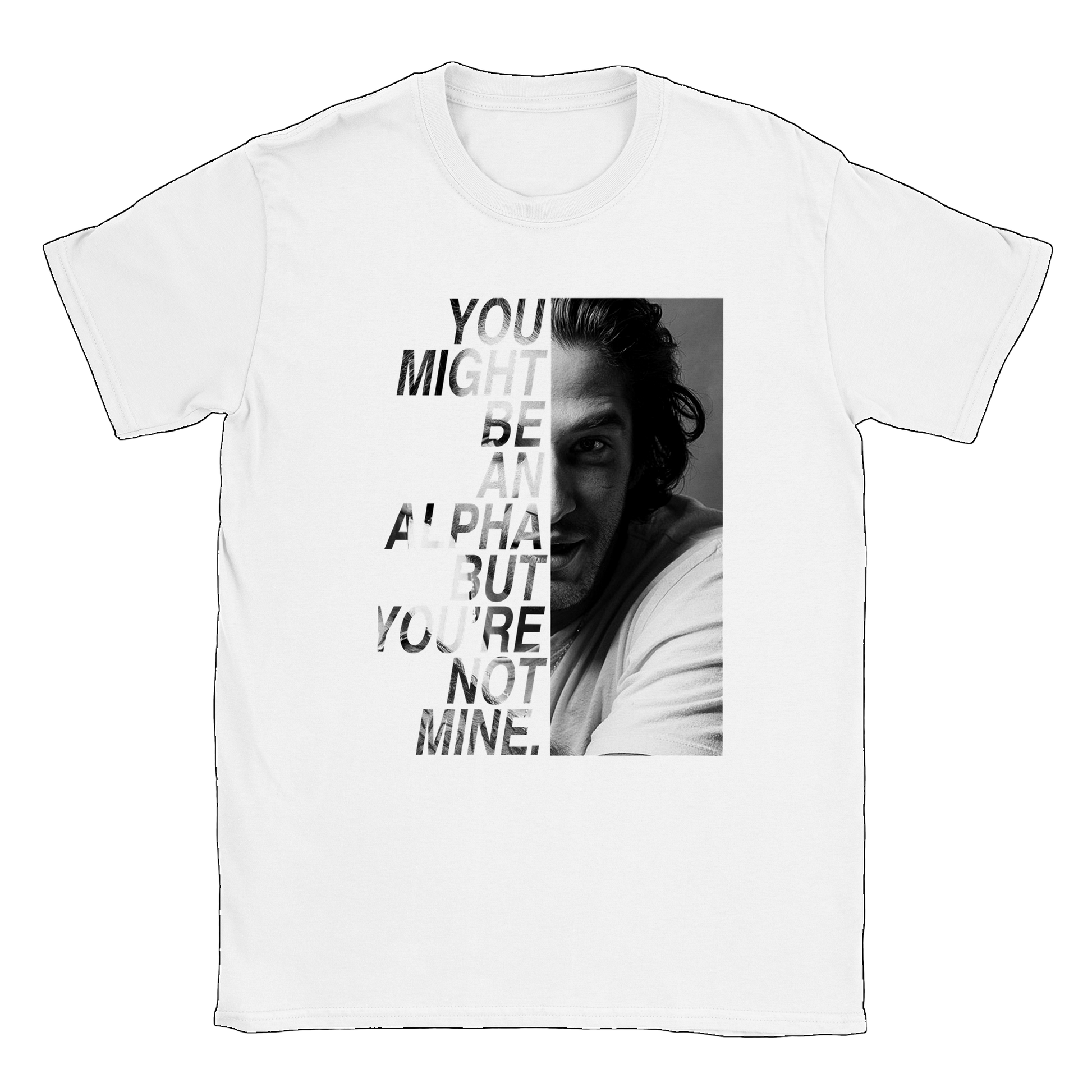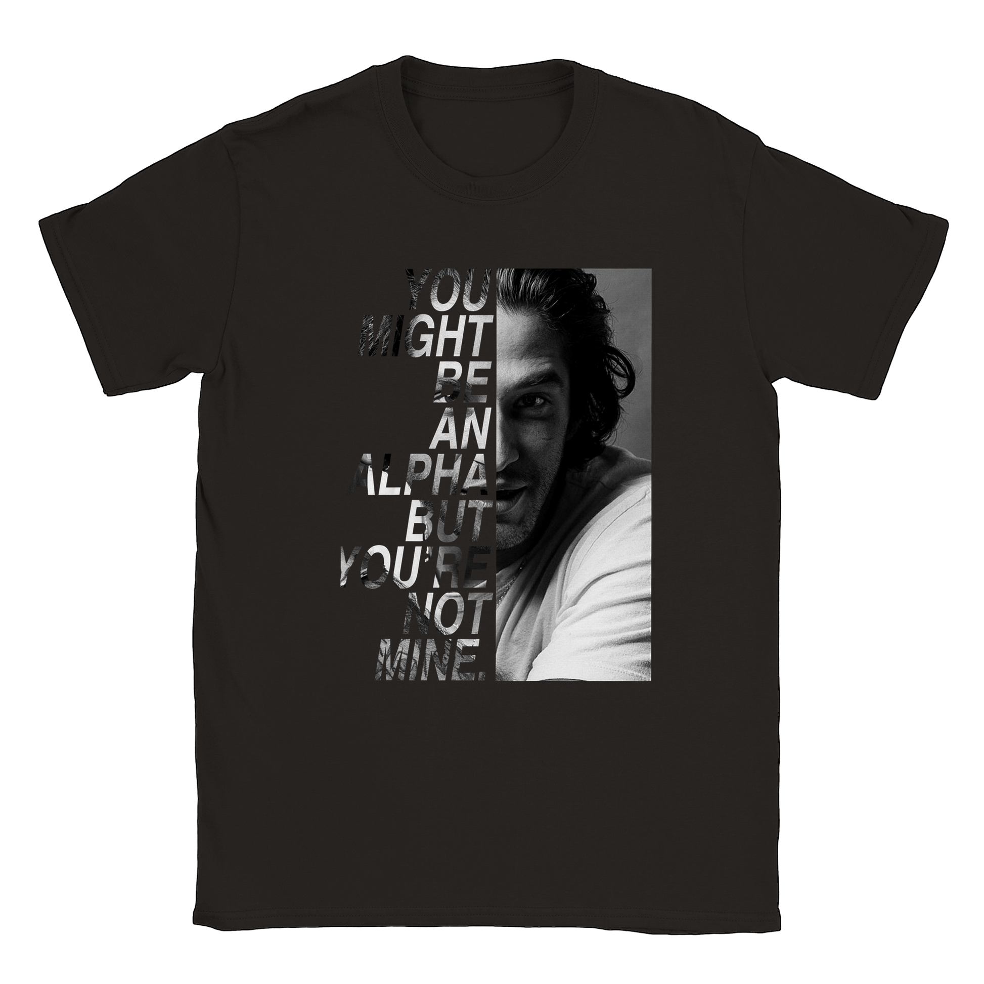 Un t-shirt de la citation "You might be an alpha but you're not mine" de SCOTT MCCALL avec une photo de TYLER POSEY prise lors de la convention BEACON HILLS FOREVER inspirée de la série TEEN WOLF.
