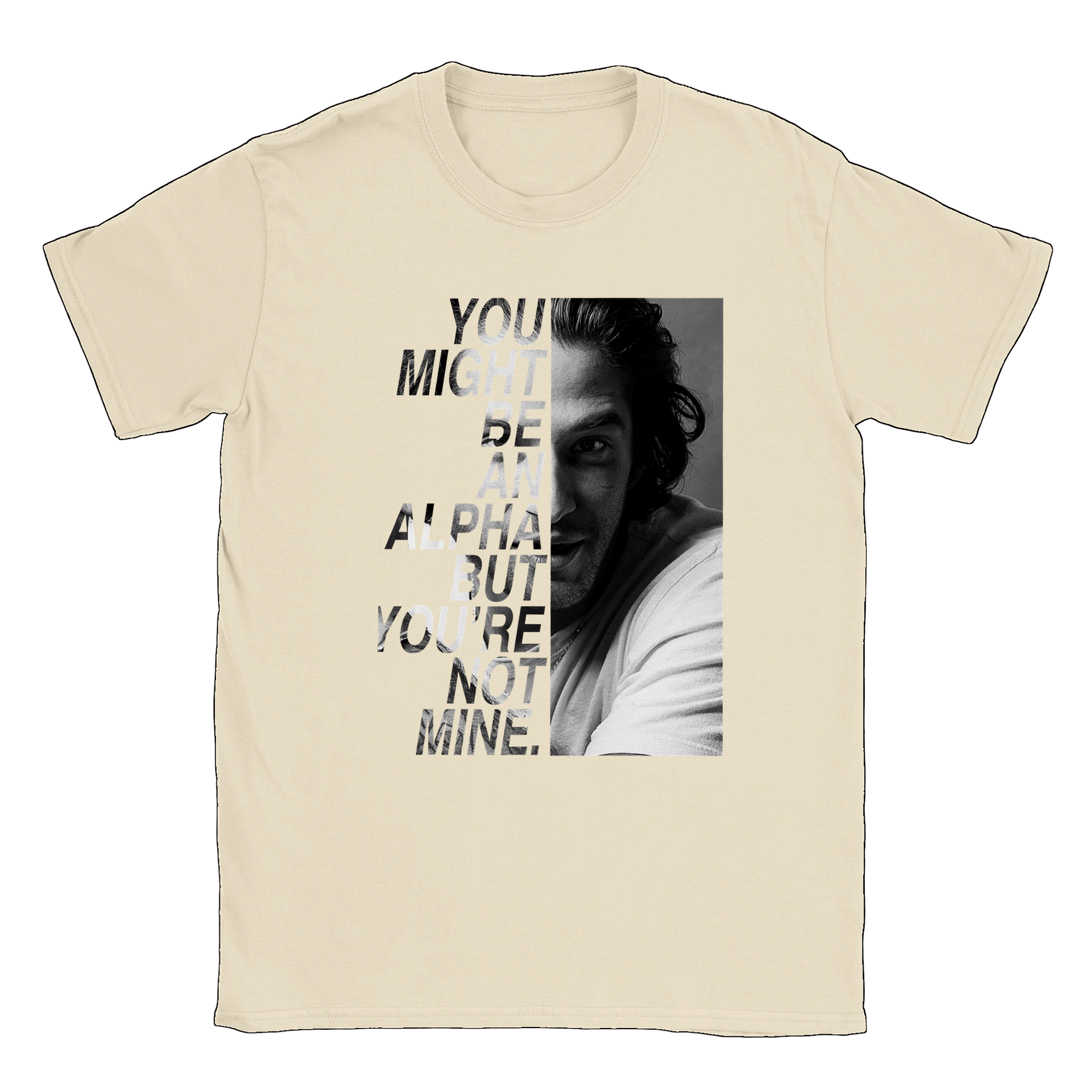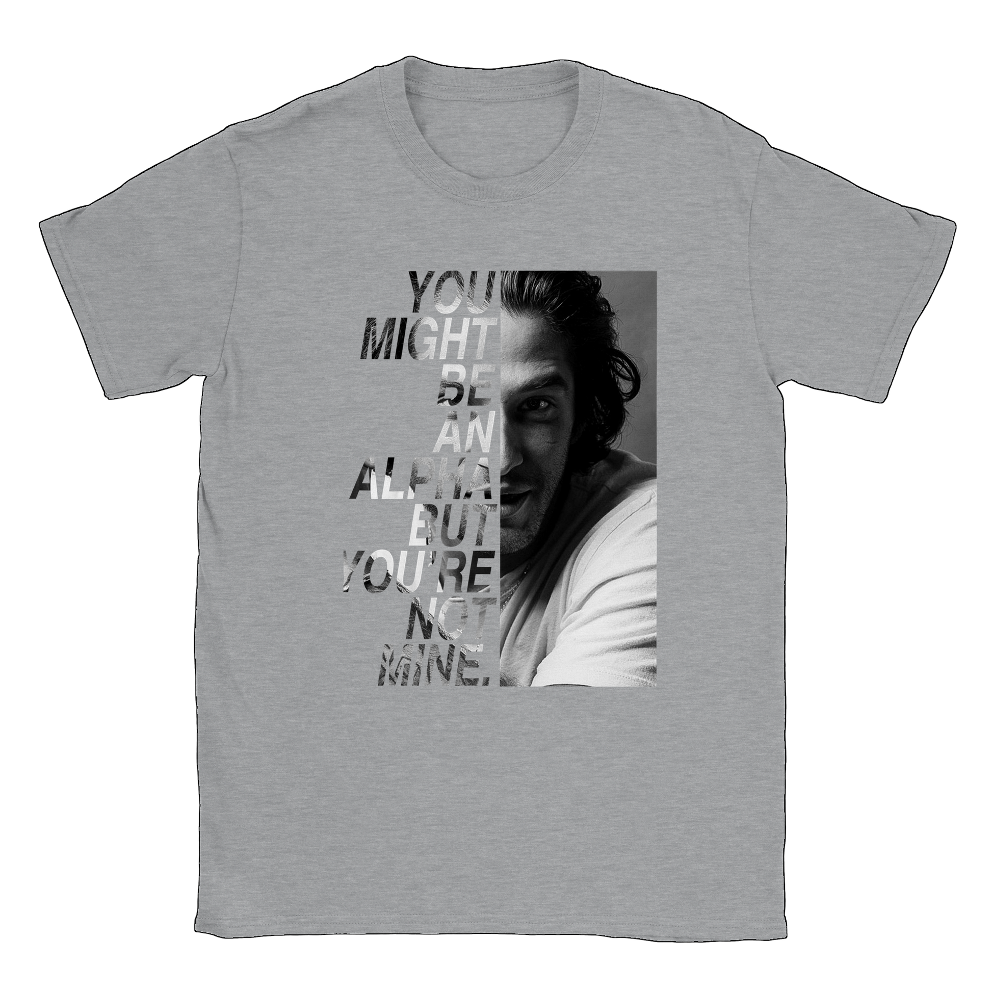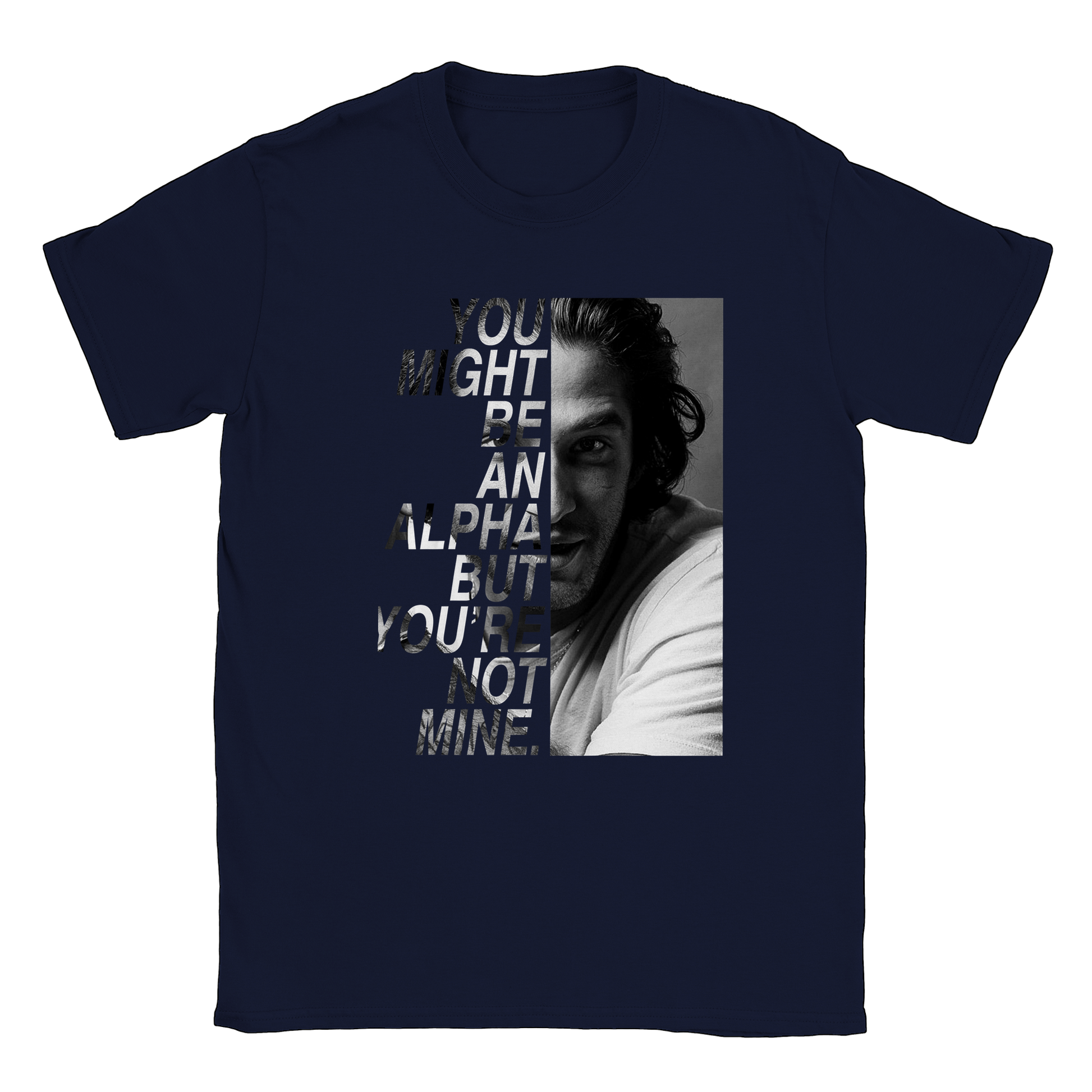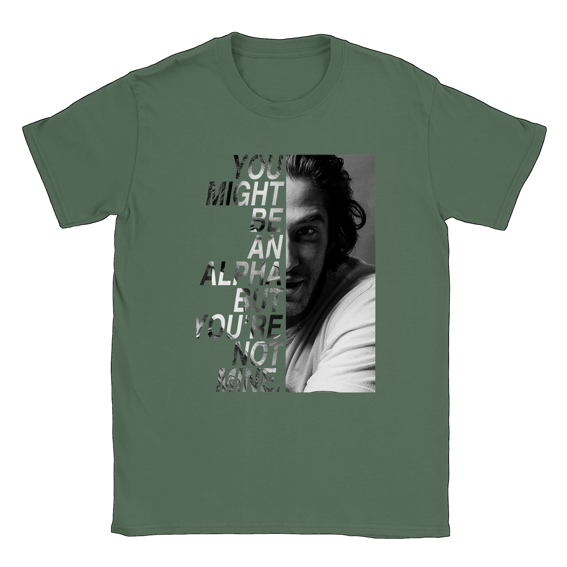 Un t-shirt de la citation "You might be an alpha but you're not mine" de SCOTT MCCALL avec une photo de TYLER POSEY prise lors de la convention BEACON HILLS FOREVER inspirée de la série TEEN WOLF.