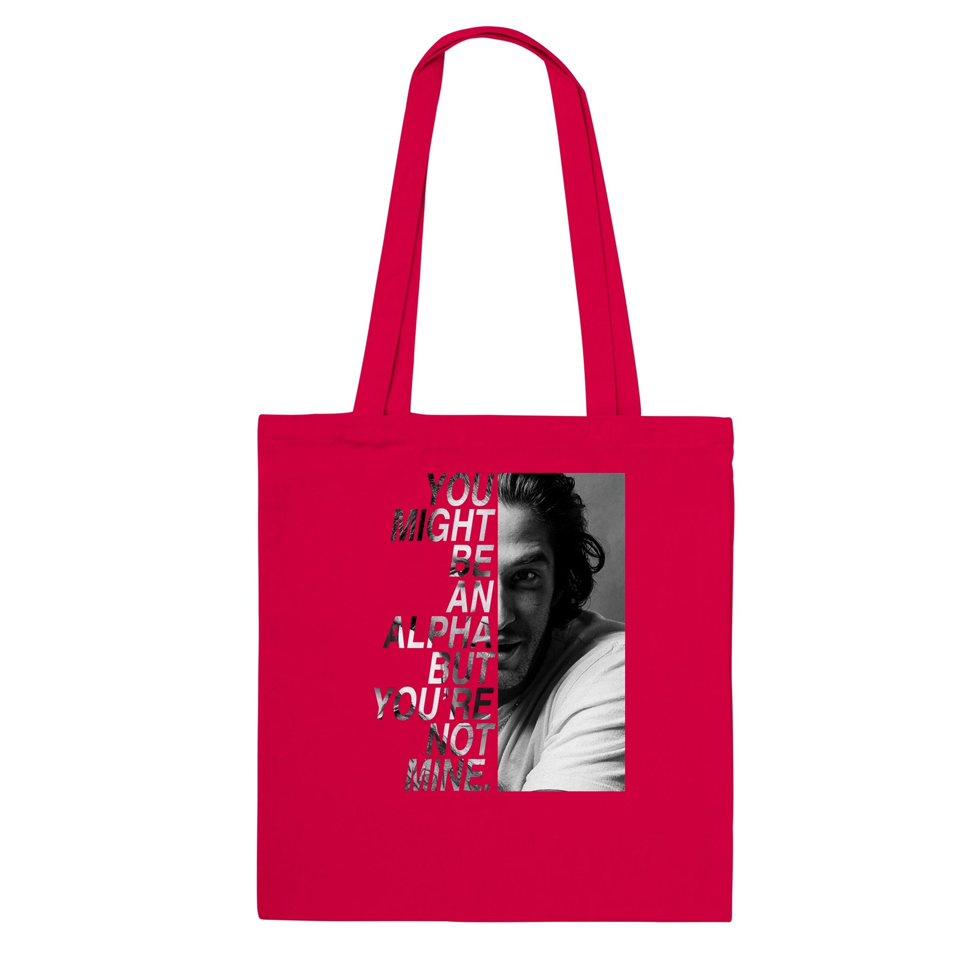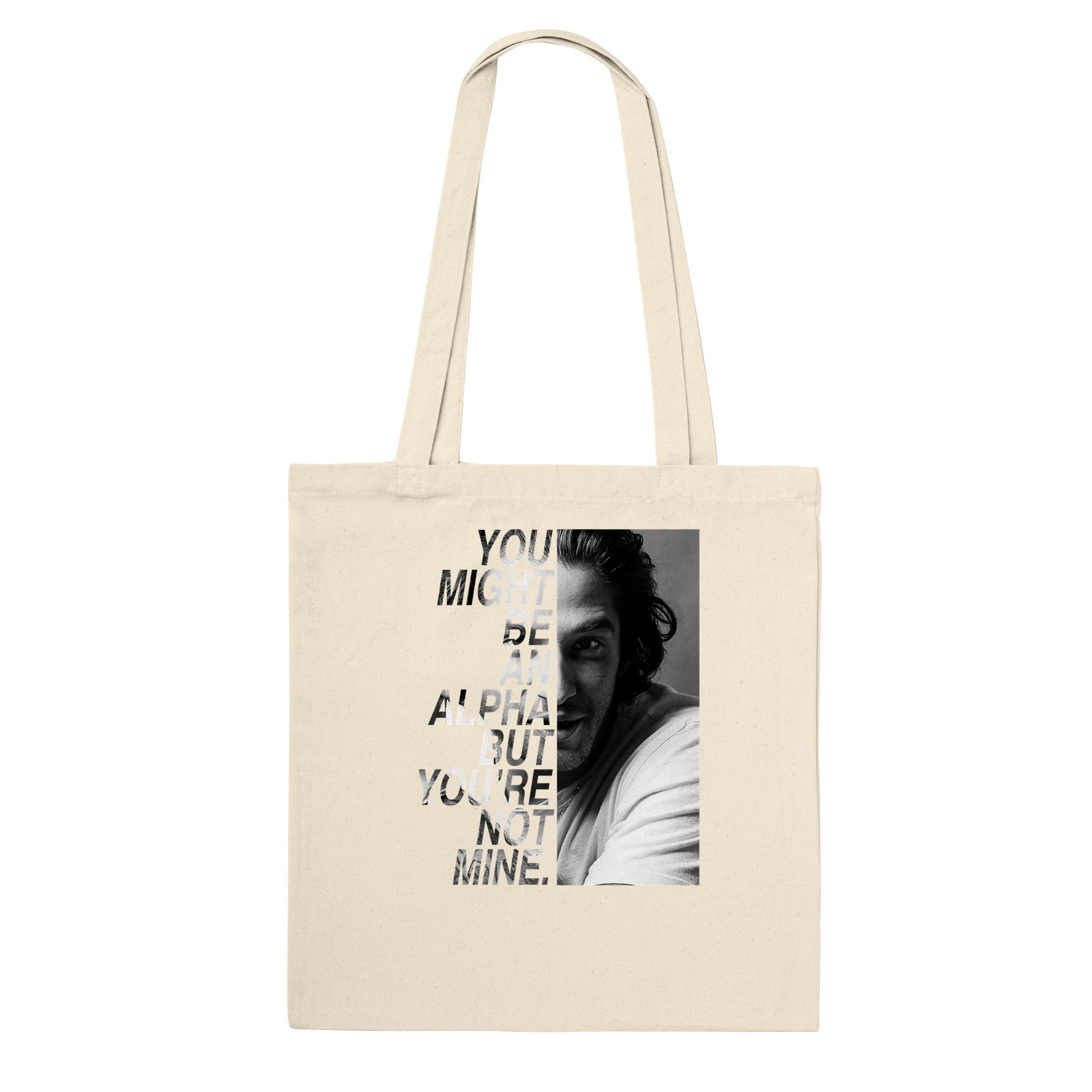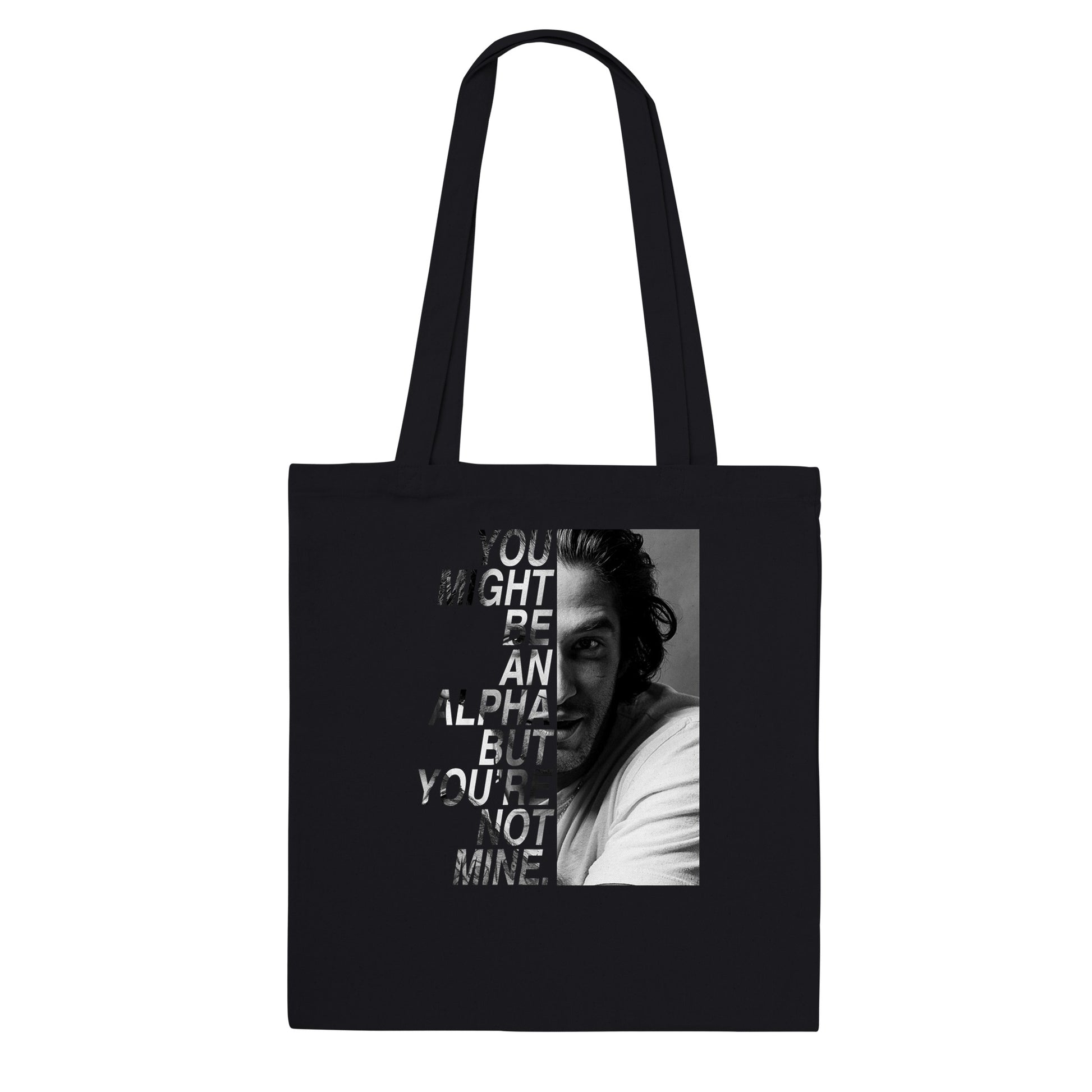 Un tote bag de la citation "You might be an alpha but you're not mine" de SCOTT MCCALL avec une photo de TYLER POSEY prise lors de la convention BEACON HILLS FOREVER inspirée de la série TEEN WOLF.